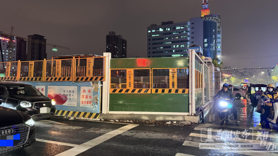 1月17日20时,记者来到文化路与红旗路交叉口,沿着文化路向南前行,可以看到文化路中间及道路两侧被围挡全部围住,仅剩南北方向各一车道可以通行。“我在中孚大厦上班,每天上下班高峰期因为围挡占据了一半的车道。早上开车从文化路左转到单位被围挡挡住视线,晚上回家被排队等红绿灯的车堵住。”在附近上班的赵先生说。