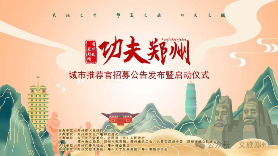 为进一步加大郑州城市品牌知名度和美誉度,由郑州市人民政府主办的“功夫郑州——城市推荐官招募活动”将于2024年1月31日至2024年3月31日举行,现面向社会招募热爱郑州,为郑州代言的“郑州城市推荐官”。