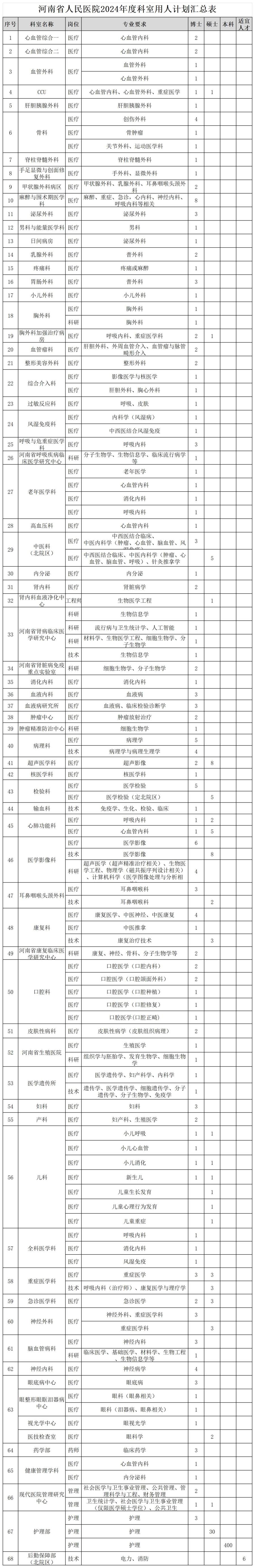 近日,河南省人民医院发布公告,根据医院发展需要,招聘专业技术人才678人。