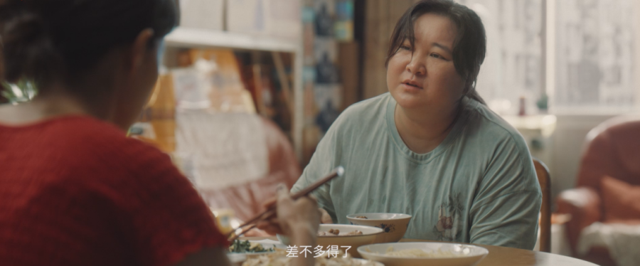 乐莹开始健身后,春夏秋冬的转场,赘肉一点点减少、肌肉线条一点点出现,泪水、汗水、孤独的坚持、不屈的生命力全都在几秒的镜头语言中叙述到位。