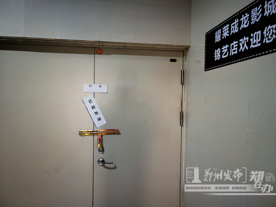 2月22日上午,记者来到棉纺路锦艺城B区4楼的耀莱成龙影城,此时进出影城的电梯仍可正常使用,但观影通道和前台区域已不见有人,影厅、机房和办公间也已贴上封条,由河南耀莱影城锦艺分公司发布的落款日期为“2023年11月24日”的《暂停营业公告》,称“因设备升级改造暂停营业”,并公布两个号码供会员联系。