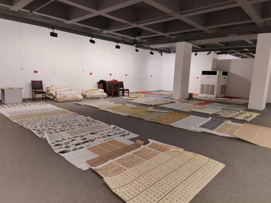 在升达艺术馆评审活动现场,来自书画界的专家评委正在紧锣密鼓地评选作品。现场工作人员表示,本次活动共10位评委,他们要在一天时间内,从近4000余件作品中,经过几轮遴选,挑选出140件入展作品和10件获奖作品。