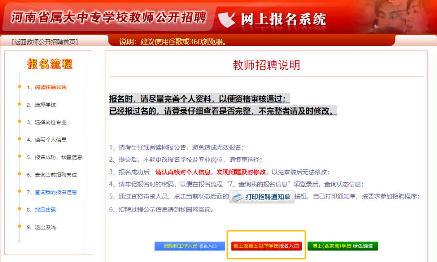 2024年3月6日08:00至3月8日18:00,应聘人员可登录河南省属大中专学校教师公开招聘网上报名系统(网址http://zhaopin.haedu.gov.cn/,以下简称“招聘系统”),通过“硕士及硕士以下学历报名入口”,点击“河南工业大学”进行报名。