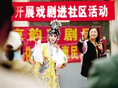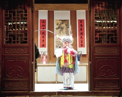 演员在城隍庙城市文明轴线福苑内为观众表演豫剧