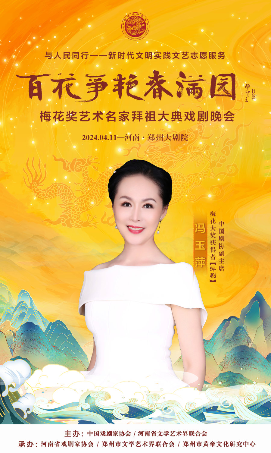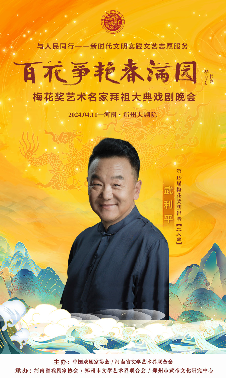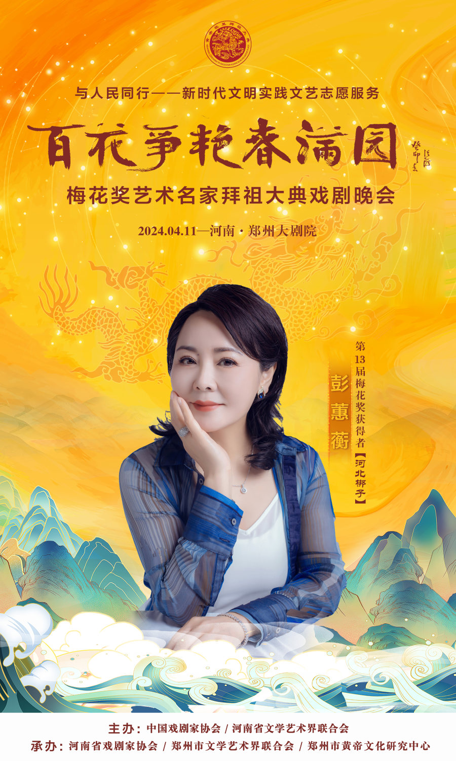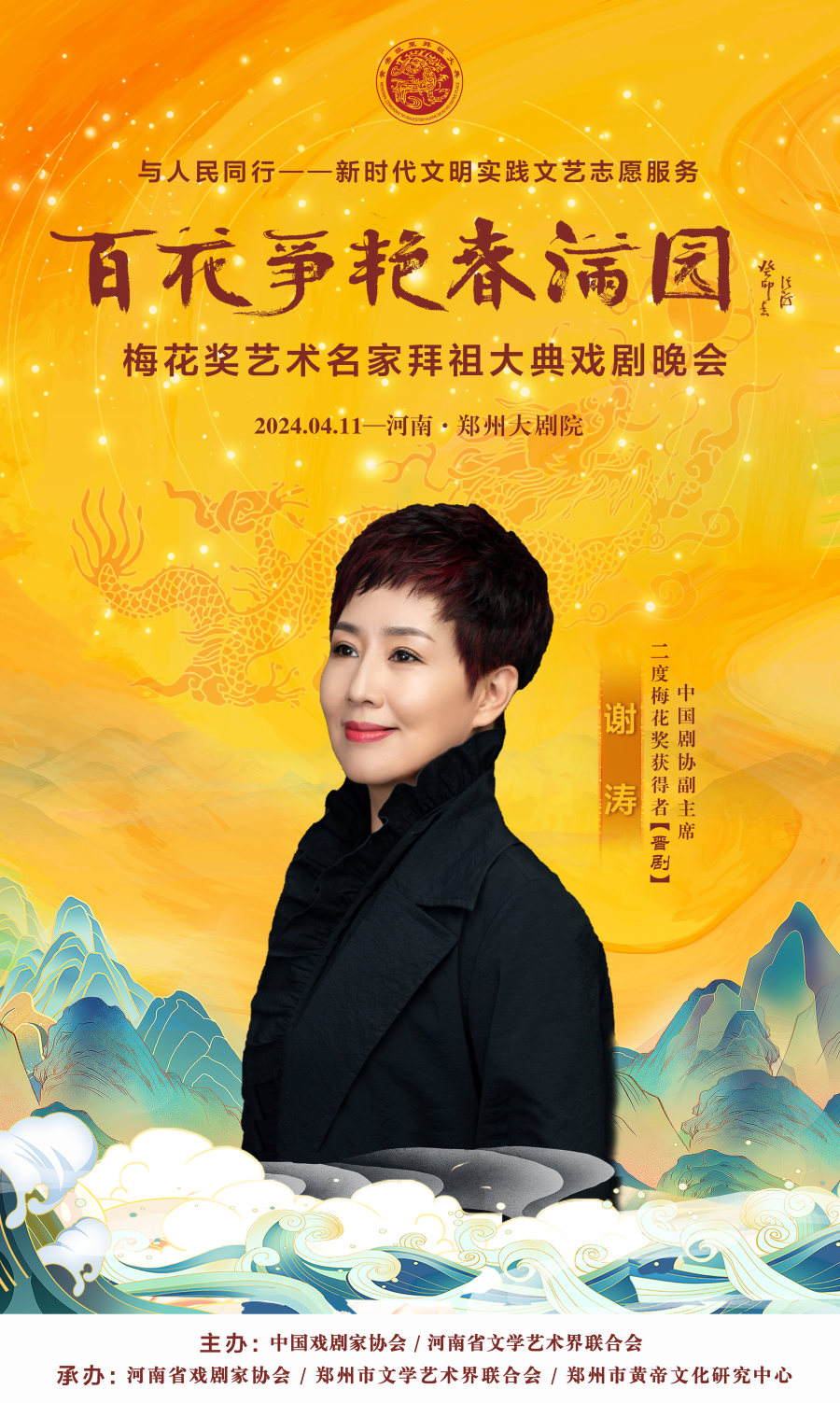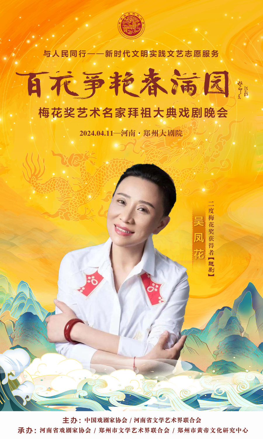 作为甲辰年黄帝故里拜祖大典的系列活动之一,4月11日晚,与人民同行——新时代文明实践文艺志愿服务“百花争艳春满园”梅花奖艺术名家拜祖大典戏剧晚会将在郑州大剧院歌舞剧场举办。届时,获得中国戏剧表演艺术最高奖的20名“梅花奖”得主将齐聚“天地之中”,共同唱响中华儿女同根同心的心声,为前来拜祖的海内外嘉宾和广大戏迷献上戏剧盛宴。