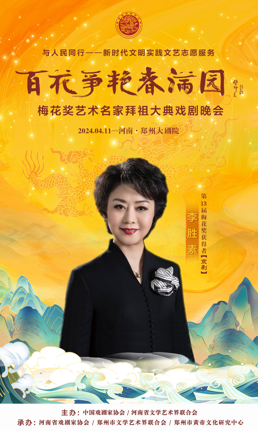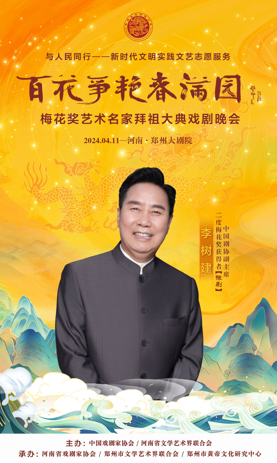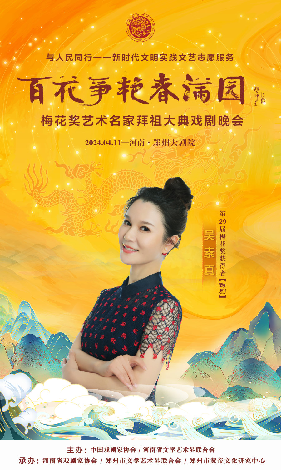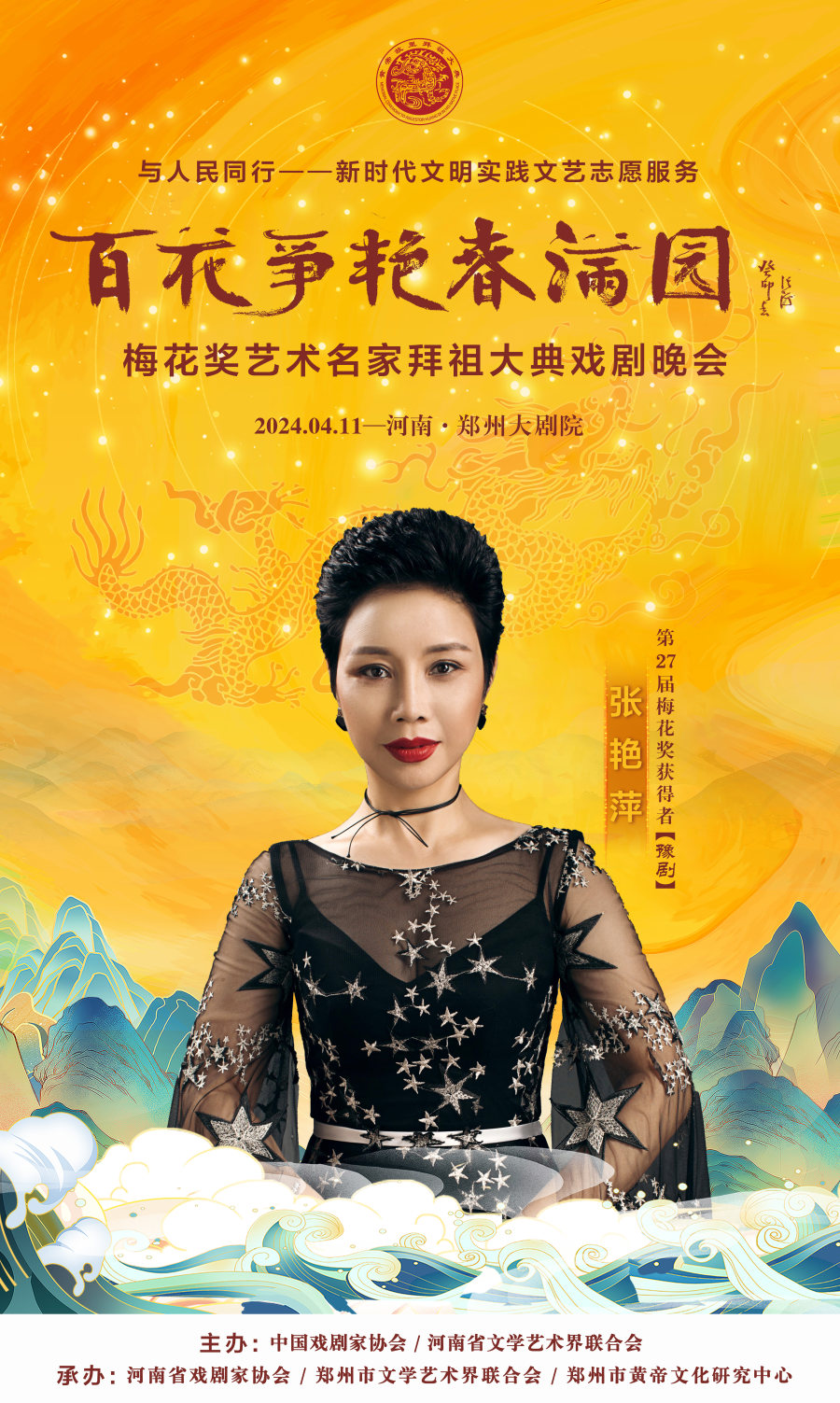 作为甲辰年黄帝故里拜祖大典的系列活动之一,4月11日晚,与人民同行——新时代文明实践文艺志愿服务“百花争艳春满园”梅花奖艺术名家拜祖大典戏剧晚会将在郑州大剧院歌舞剧场举办。届时,获得中国戏剧表演艺术最高奖的20名“梅花奖”得主将齐聚“天地之中”,共同唱响中华儿女同根同心的心声,为前来拜祖的海内外嘉宾和广大戏迷献上戏剧盛宴。