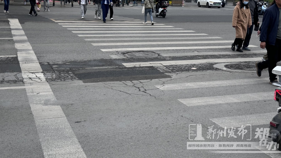 路面处理的效果如何?4月6日17时许,记者再次来到中原东路与大学北路交叉口进行回访,此时交叉口东北角右转机动车道上影响通行的凹陷路面已经被填平,交叉口北侧斑马线上的坑洼也已处理,来来往往的市民出行也不需要刻意避让。