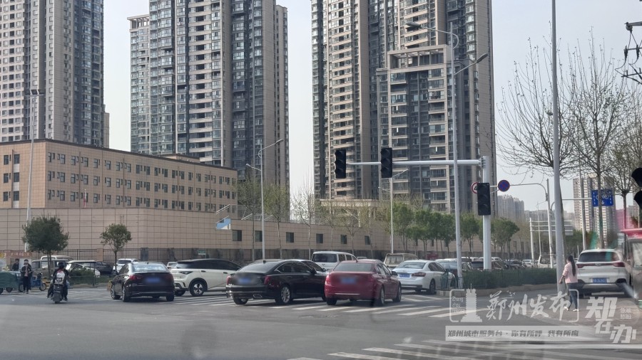 4月10日14时,记者来到尧山路与绿水路交叉口,附近分布泰宏建业国际15号院、泰宏建业国际16号院、亚星观邸等居民小区,以及郑州市二七区国际城中学、二七区陇西国际城小学,是附近居民出行的必经路口,每天车流量、人流量较大。