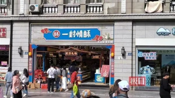 接到这位网友的投诉后,4月9日下午,极目新闻记者来到位于江汉路步行街江汉路地铁站C出口附近的“一封情酥”。门店外,一位工作人员正在路边邀请往来路人品尝试吃。走进店内,柜台上摆满了各式各样的糕点,旁边还放有不少试吃装,顾客可以随意品尝、试吃。