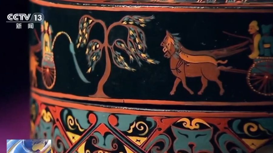 武王墩考古发掘项目文物保护负责人 张治国:武王墩漆器的话,从目前来看,以黑漆、红漆还有一些黄彩,另外还有一些描金,然后这几种为主。黑色的漆,里面的颜料主要是炭黑。像黄彩的话,它的颜料主要是雄黄和雌黄的混合物。跟其他相同颜色的漆器的主要成分应该是类似的。