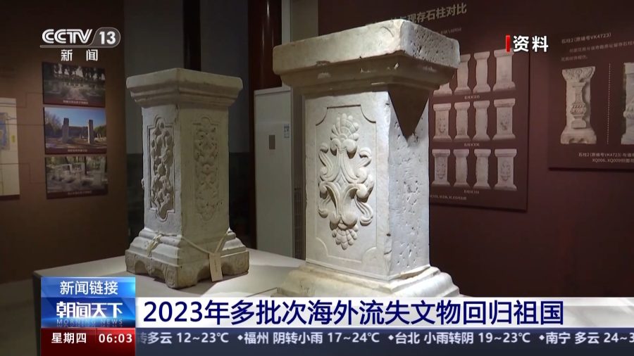 2023年5月9日,经国家文物局授权,中国驻纽约总领馆接收美国纽约曼哈顿区检察官办公室向我国返还两件非法流失的重要石刻文物。两件文物是在一起刑事案件调查中被发现的,国家文物局2022年4月获悉消息后,与中国驻纽约总领馆等相关机构密切协作,在美方职能部门配合下,成功实现文物返还。