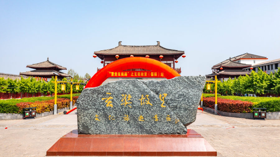 隋文帝开皇二十年(公元600年),玄奘法师出生于洛阳偃师缑氏镇陈河村,书香门楣,家奉儒学。少失恃怙,随兄长捷居净土寺,习大乘要典,十三岁已崭露头角,甚至得到了“曾子避席孺子独秀初显释门千里驹,远绍如来近光遗尘终为西域万乘尊”的称赞。梁启超评价他说:“玄奘是中国第一流学者,决不居第二流以下。”“中国第一流的学者”正是从偃师走出,开启他的万里之行。