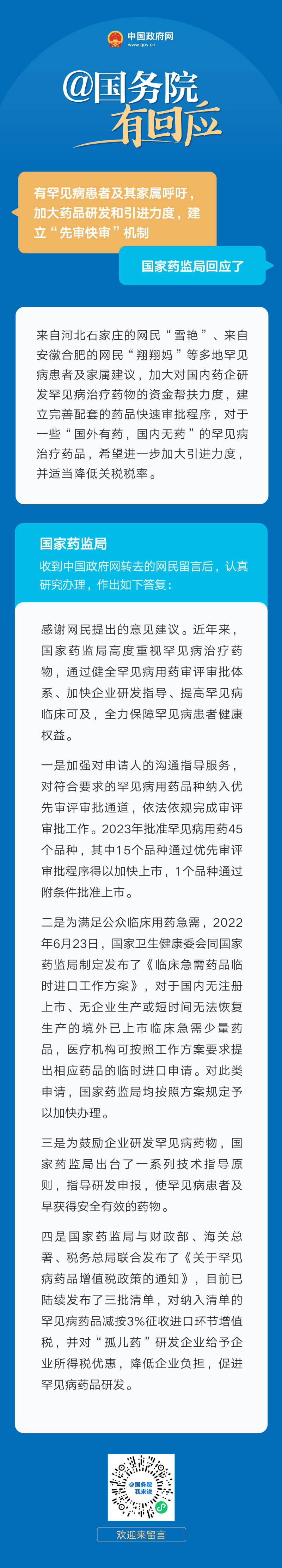 网民建议加大罕见病药品研发和引进力度,药监局回应