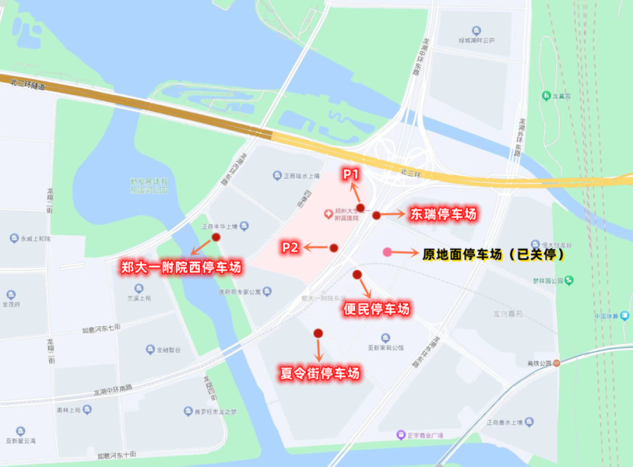 医院新开发的郑大一附院西停车场(冬雪街停车场)