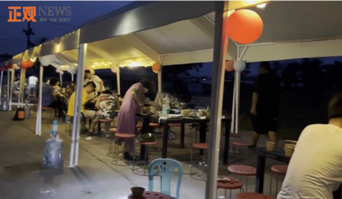 “你知道为啥吗?就特别不好意思,你一走到那儿就一群人喊你:‘过来尝尝,过来尝尝’。特别像我小时候回外婆家,农村里大家做好饭后,都爱端着碗到院外边吃边聊,你尝尝我的菜,我尝尝你的菜,只有氛围感,没有距离感。”姚春旭说。