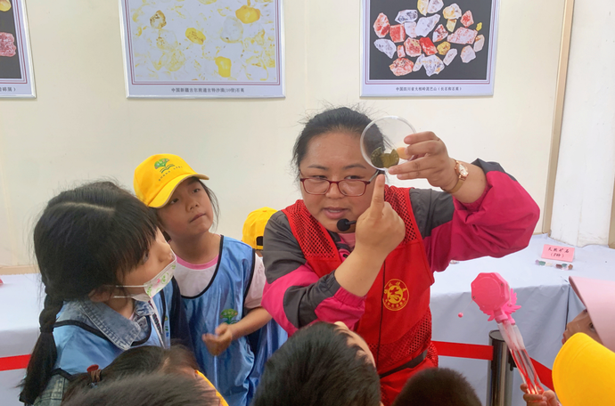 一草一木、一沙一石都深深地烙刻着地球演变的印记。现场展示的百余种矿石、化石、砂石、土壤等材料,分别隐含着不同的地质信息,参观者驻足它们面前,仔细观察体味,了解地球的历史,感受地球的魅力。活动组织者还带领孩子们寻找石灰岩景石里隐藏的常见化石,引导孩子们思考地质结构与海洋生物的关系,关注地球环境变化,培养他们共同保护地球家园的意识。