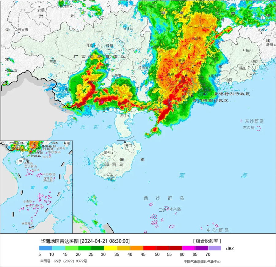△4月21日8时30分华南地区雷达回波图