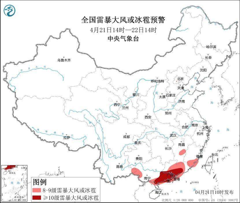4月19日8时至21日8时,贵州南部、江南南部、华南北部和中东部等地的部分地区出现暴雨到大暴雨、局地特大暴雨。中国气象局于4月18日8时30分启动暴雨三级应急响应。4月21日10时,中央气象台继续发布暴雨橙色预警、强对流天气黄色预警。