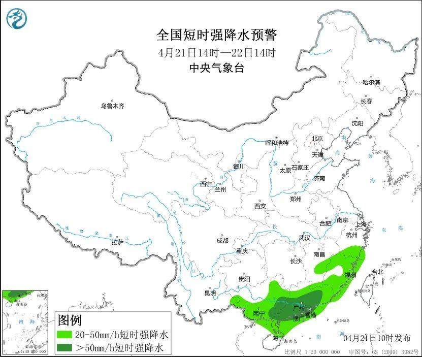 中央气象台预计,4月21日至22日,江南南部和东部、华南中东部和南部等地仍有强降水,局地有大暴雨并伴有雷暴大风或冰雹等强对流天气。23日,华南地区的降雨将明显减弱,但华南南部沿海部分地区仍有大到暴雨。另外,在25日前后,贵州、江南、华南等地还将有一次较强降水过程。
