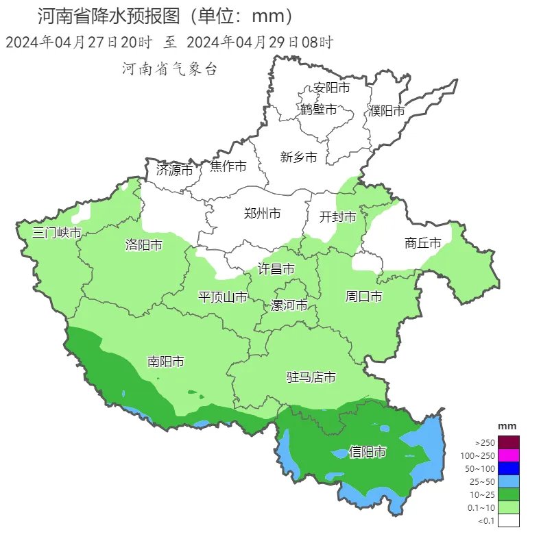 其中南阳南部、信阳部分县市有中雨、局部大雨