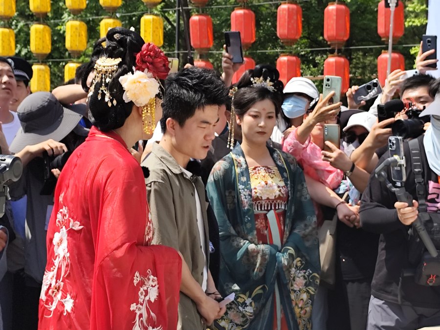 正观新闻记者在现场看到,“与辉同行”团队的到来,受到游客的欢迎。团队边走边播,景区也拿出了舞蹈、非遗等项目,现场气氛热烈。
