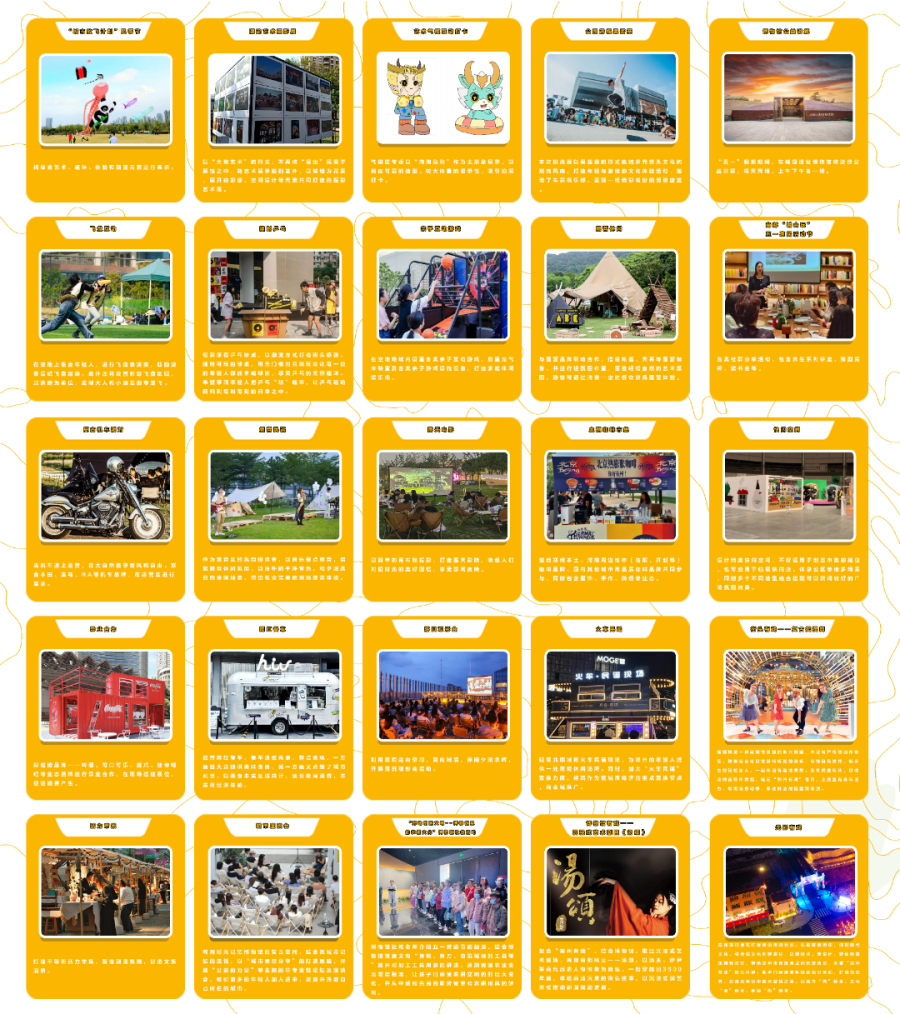 内容:放置网红餐车,餐车造型亮眼,整洁美观,一方面给大众提供美味食品,另一方面又点缀了城市风景。以美食丰富区域共计,延长夜间消费,丰富夜经济体验。