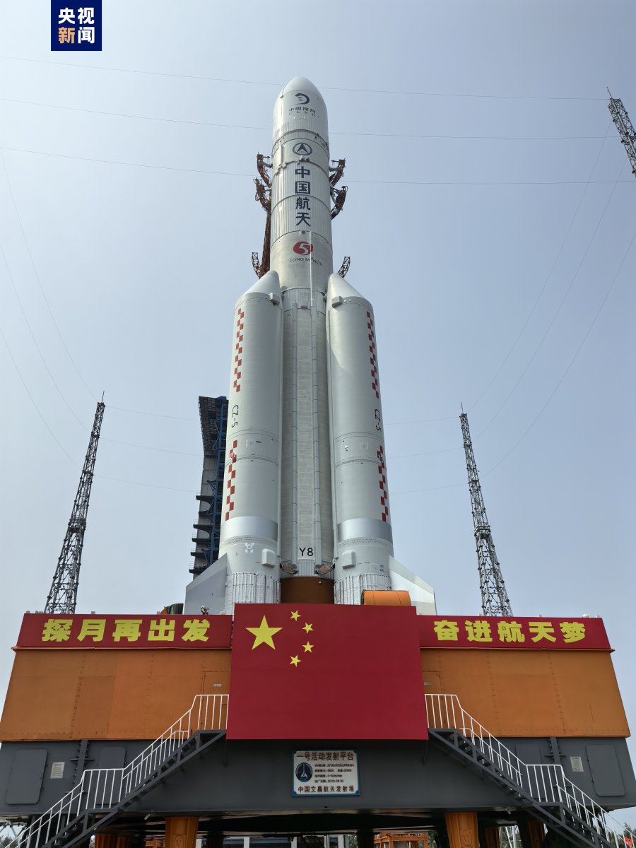 嫦娥六号探测器、长征五号遥八运载火箭分别于1月、3月运抵发射场后,陆续完成总装、测试等各项准备工作。