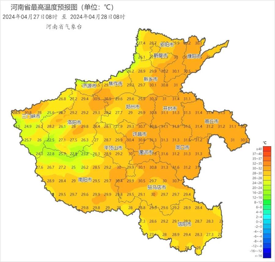 明天,黄河以南阴天,三门峡南部、洛阳南部、南阳、信阳、驻马店、周口东部、商丘部分县市有阵雨、雷阵雨,局地伴有雷暴大风、短时强降水等强对流天气;其他县市多云。