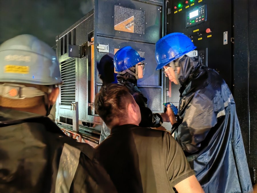 龙卷风导致白云区钟落潭镇光明村部分电力中断,光明村现行,供电部门正在抢修电力设施。