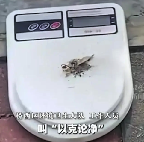 近日,一段视频火了,环卫工人将路边的空地用木框框住后,将灰尘收集起来放到一个电子秤上称重。据中国新闻周刊报道,这一幕发生在河北石家庄。相关工作人员回应:市里有“以克论净”的考核,“比如说快车道灰尘不超5克/平方米,会有专门的测量车随时停车抽查。”
