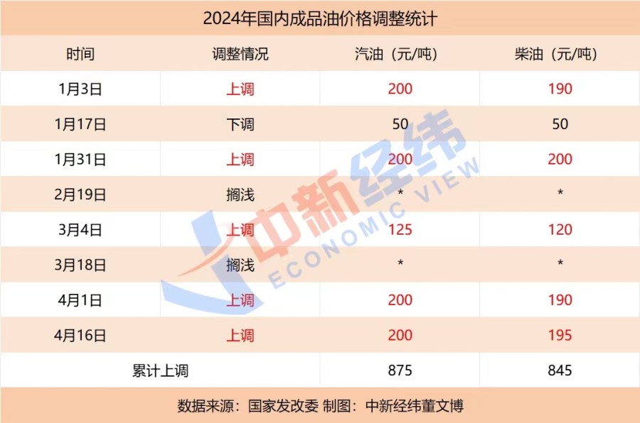 据中新经纬梳理,今年以来,国内成品油调价已呈现“五涨一跌两搁浅”格局,汽、柴油每吨分别累计涨875元、845元。若本轮调价落地,年内成品油调价将为“五涨两跌两搁浅”。