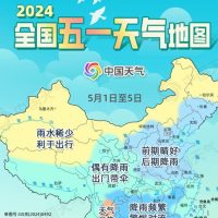 五一假期前期(5月1日和2日)我国北方大部天气晴好,西部地区有小雨或阵雨天气,江淮、江汉、江南一带雨水也较少,天气情况总体有利于大家出行;假期后期(5月3日至5日),中东部地区有一次大范围降水过程,江南、华南部分地区有中到大雨、局部暴雨;西北地区东部、黄淮、华北及东北地区南部有小到中雨,局地大雨或暴雨,部分地区伴有强对流天气,可能会对假期返程造成影响。
