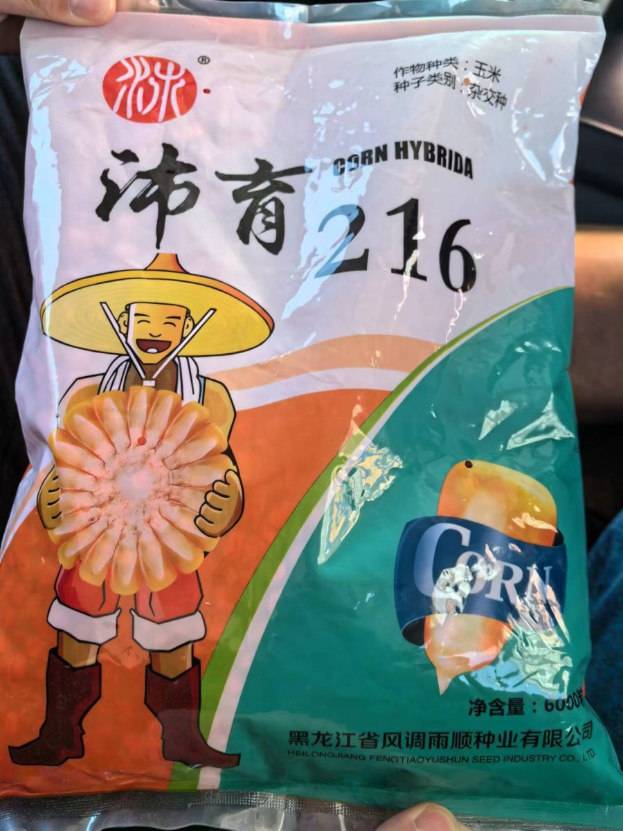 村民乙:“龙雨77”牌子的,我们屯子全种这个。他说是迪卡系列的,超过1563,老板这么说的。