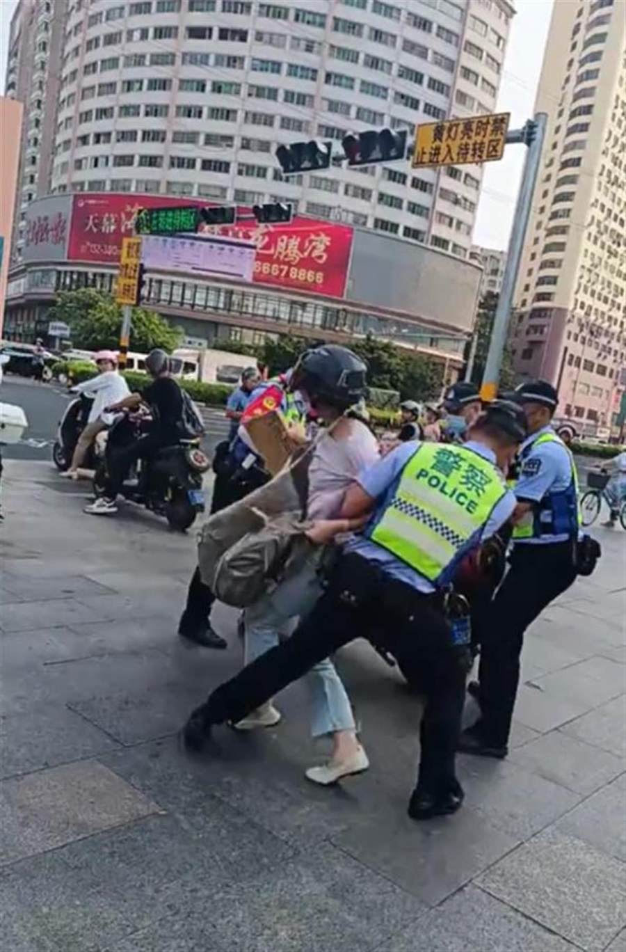 4月29日,一段“女子闯红灯不接受处罚,被交警拽下电动车”的视频引发关注。4月30日,海口市公安局交警支队发布通报,经查,女子萧某某驾驶电动自行车闯红灯,现场执勤警力将其拦下,要求其下车接受处罚,但萧某某拒绝下车,多次试图强行驾车驶离现场。交警劝说6分钟仍无效后,口头警告其若不下车接受处罚将采取强制措施,萧某某仍然拒绝,随后交警将其强制带离电动自行车。