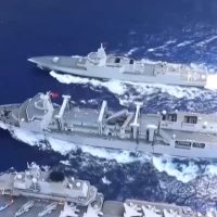 2023年4月,由中国首艘国产航母山东舰组成的航母编队4月穿越巴士海峡,经过台岛东南海域展开首次西太平洋训练。航母编队出岛链开展军事训练成为常态。同年11月30日下午,国防部新闻发言人披露了我国第三艘航母福建舰开展系泊试验的消息。而在顺利完成系泊试验和装设备调试后,5月1日,海军福建舰出海开展首次航行试验。