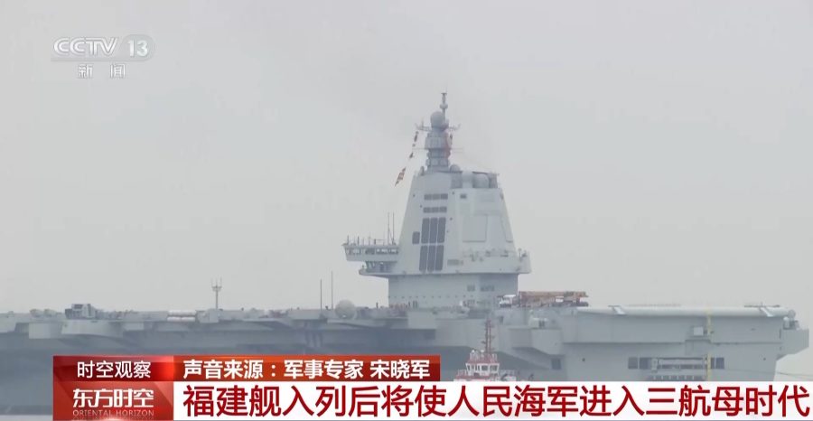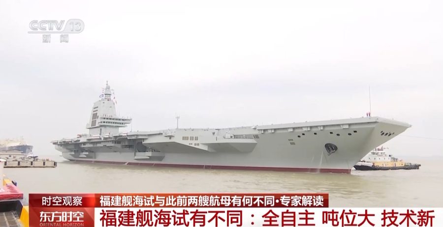 军事专家 宋晓军:福建舰的海试之所以备受关注,我觉得跟人民海军的前两艘航母有三个不同点。