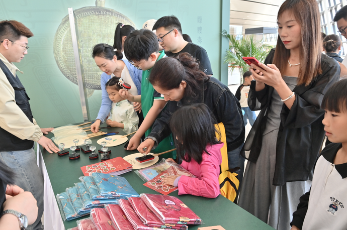 与户外考古工地火热朝天的公众开放日同时进行的,还有在郑州市文物考古研究院考古博物馆举行的“鼉鼓逢逢——商代铜鼓体验展”和“商都品礼——书院街墓地出土商代青铜酒礼器特展”,精美大气的青铜器和其深厚的文化底蕴,向公众生动展示出“中华第一鼓”和书院街墓地考古新发现的文化内涵,吸引了众多观众的目光。