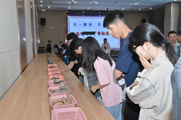 在考古博物馆二楼报告厅,“文物零距离”活动展出十余件不同时代、器形的文物,在郑州市文物考古研究院工作人员的讲解、指导下,观众可上手触摸,与文物“亲密交流”,直接感受文物之美。
