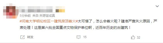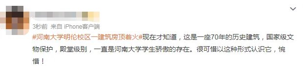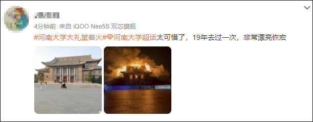 据悉,着火的建筑为河南大学大礼堂,是该校的地标性建筑,也是全国重点文物保护单位。