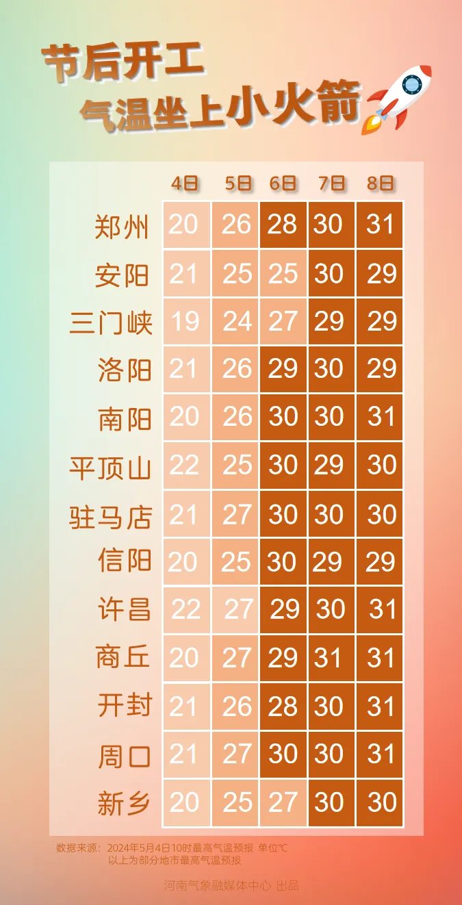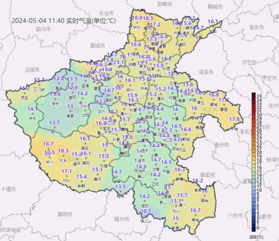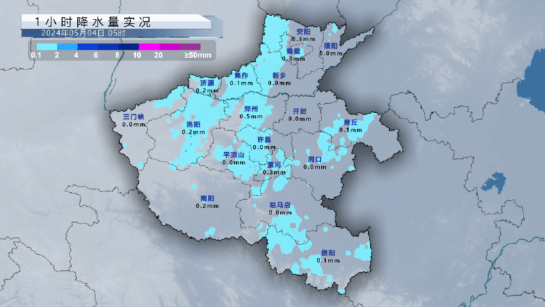 4日下午到夜里,全省阴天,安阳东部、濮阳、新乡东部、郑州东部、开封、商丘、许昌东部、周口、驻马店东部、信阳部分县市有阵雨或小雨,局部伴有雷电;其他县市局部有零星小雨。