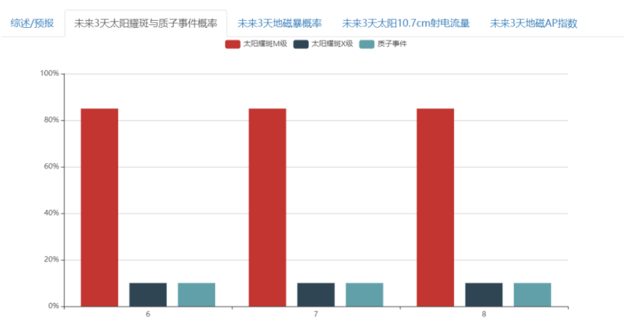 未来3天太阳耀斑与质子事件概率。来源:国家空间天气监测预警中心官网截图