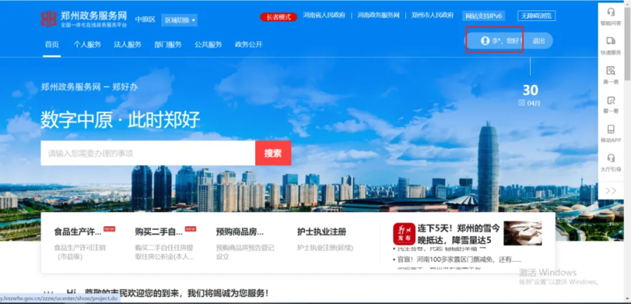 (1)在浏览器访问郑州市政务服务网https://zz.hnzwfw.gov.cn/,如下图: