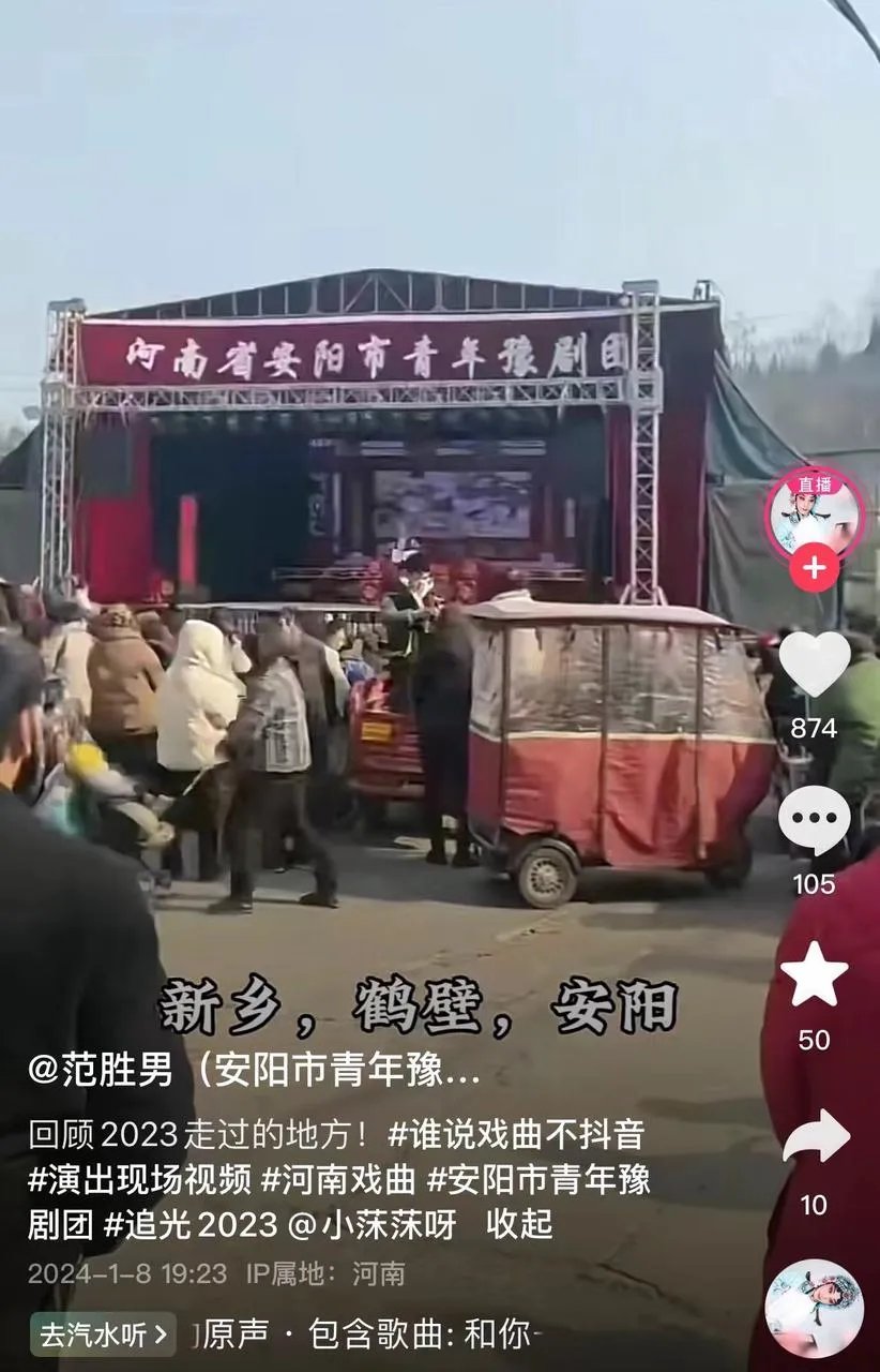2023年,范胜男和她的剧团,又回到了现场。他们在河南、河北、山东、安徽等地,跑了600多场演出,基本每天三场连轴转。2024年的春节,他们从大年二十九演到正月十几,在外地过大年,没法和家人团聚,心里却实打实地高兴。