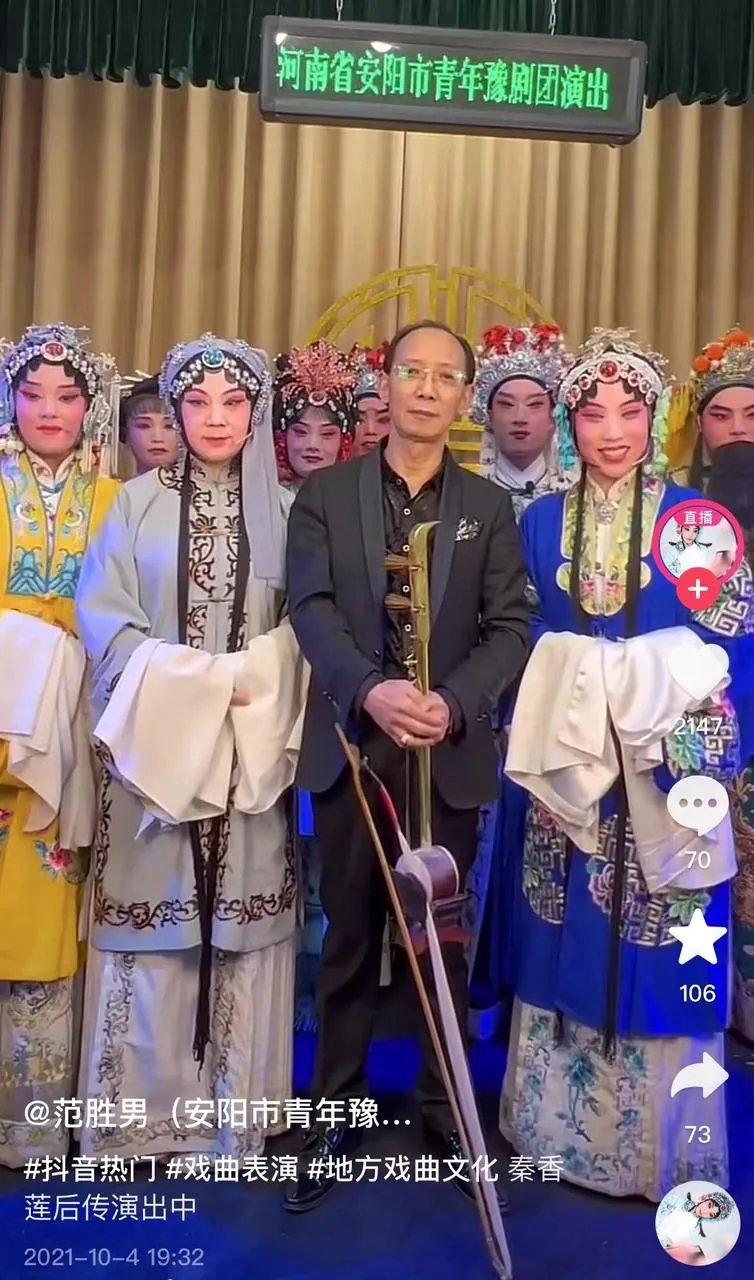 2021年10月,范胜男和剧团正式开始直播唱大戏