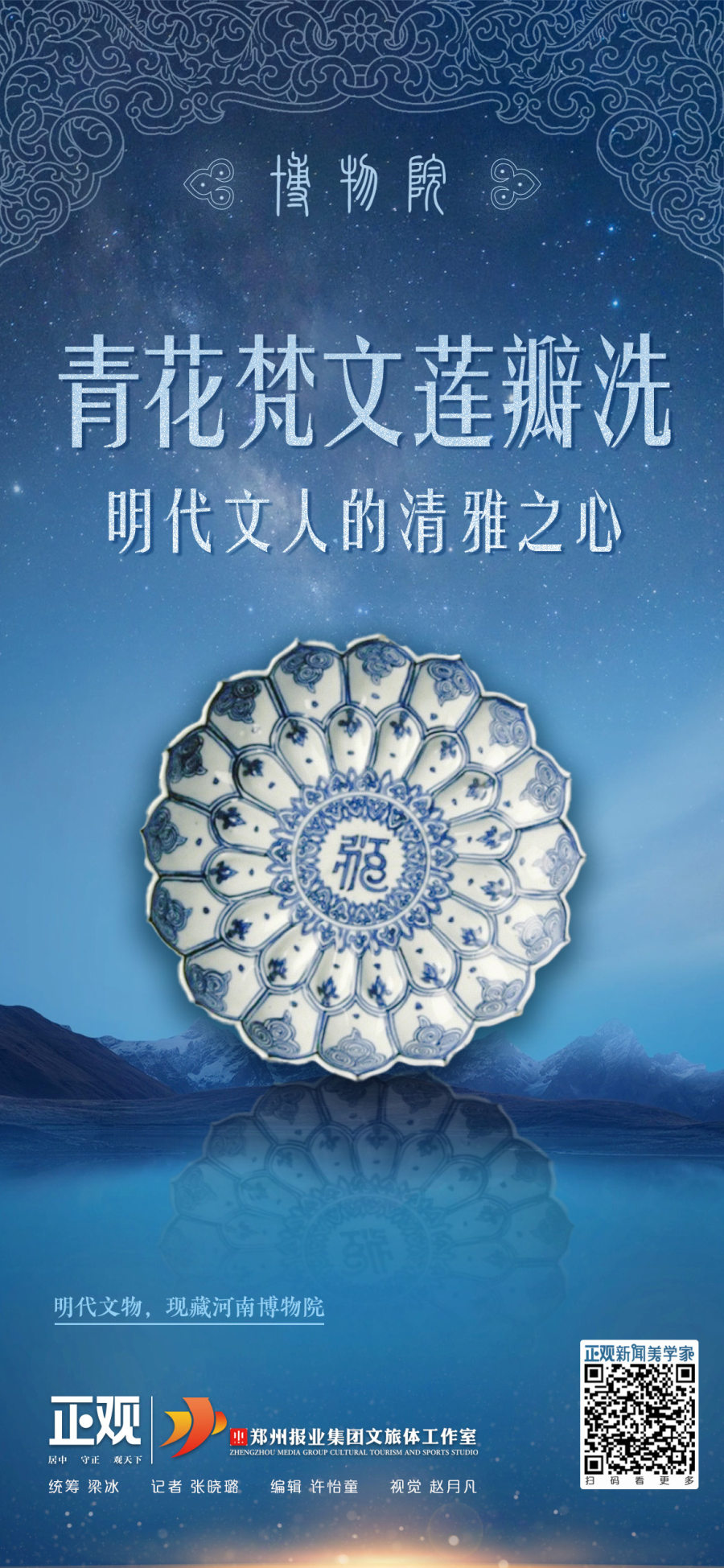 河南博物院馆藏有一件明代万历年间所制的青花梵文莲瓣洗,以其别致的造型和精细的画工,诉说着明代文人那份独特的清雅之心。