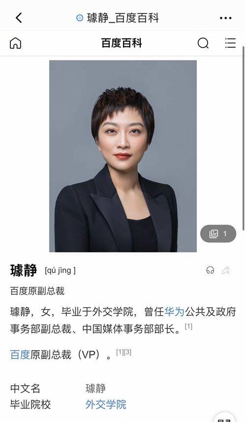 另外,百度百科已经将璩静的介绍更新为“百度原副总裁”。
