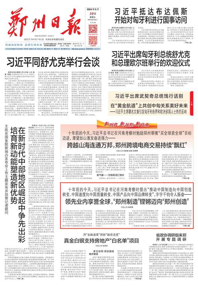 十年前的今天,习近平总书记在河南考察时提出“推动中国制造向中国创造转变、中国速度向中国质量转变、中国产品向中国品牌转变”,字字千钧令人振奋——