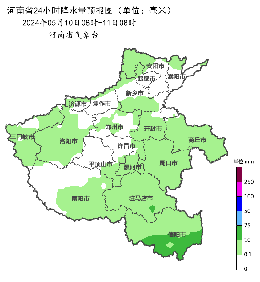 今天下午到夜里,全省多云间阴天,有分散性阵雨、雷阵雨,黄河以北和三门峡、洛阳、郑州、开封、商丘、信阳、南阳、驻马店南部局部伴有雷暴大风、短时强降水、冰雹等强对流天气。