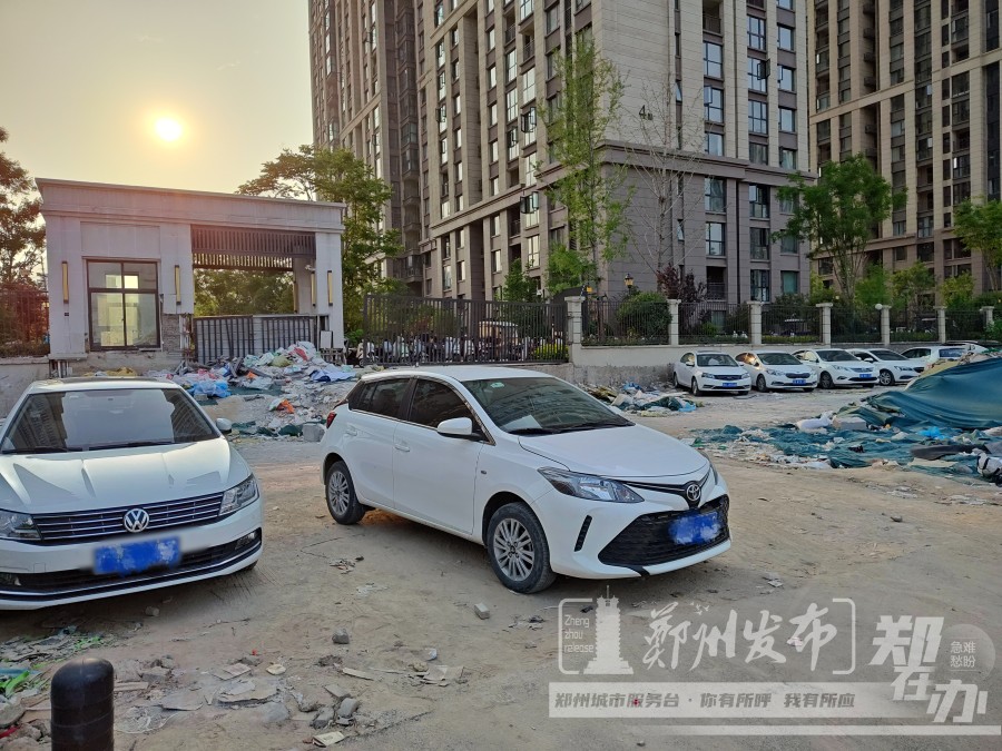 5月9日上午,记者来到洛达路与颍河路交叉口,该路南北两侧两段已开放的路面已经沦为机动车停车场,路口西南角约100米的路面被商贩占据,西北角的阳光城丽景公馆二期东门外积存有部分建筑垃圾,门前至洛达路的一段空地尚未进行硬化,部分业主踩着建筑碎块钻进与地面存有1米多落差的大门缝隙进出。