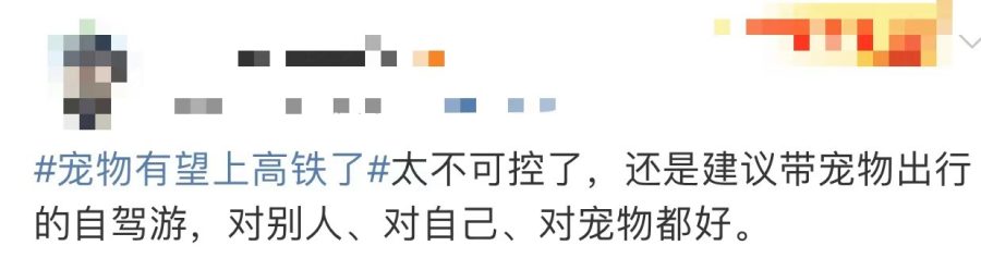 然而,也有一部分旅客对宠物上高铁持反对态度。他们主要担心宠物的存在可能会对高铁的卫生环境造成影响,尤其是宠物的排泄物和可能携带的病菌;还有人认为一些宠物应激后万一咬人挠人可能会对同车旅客造成伤害。